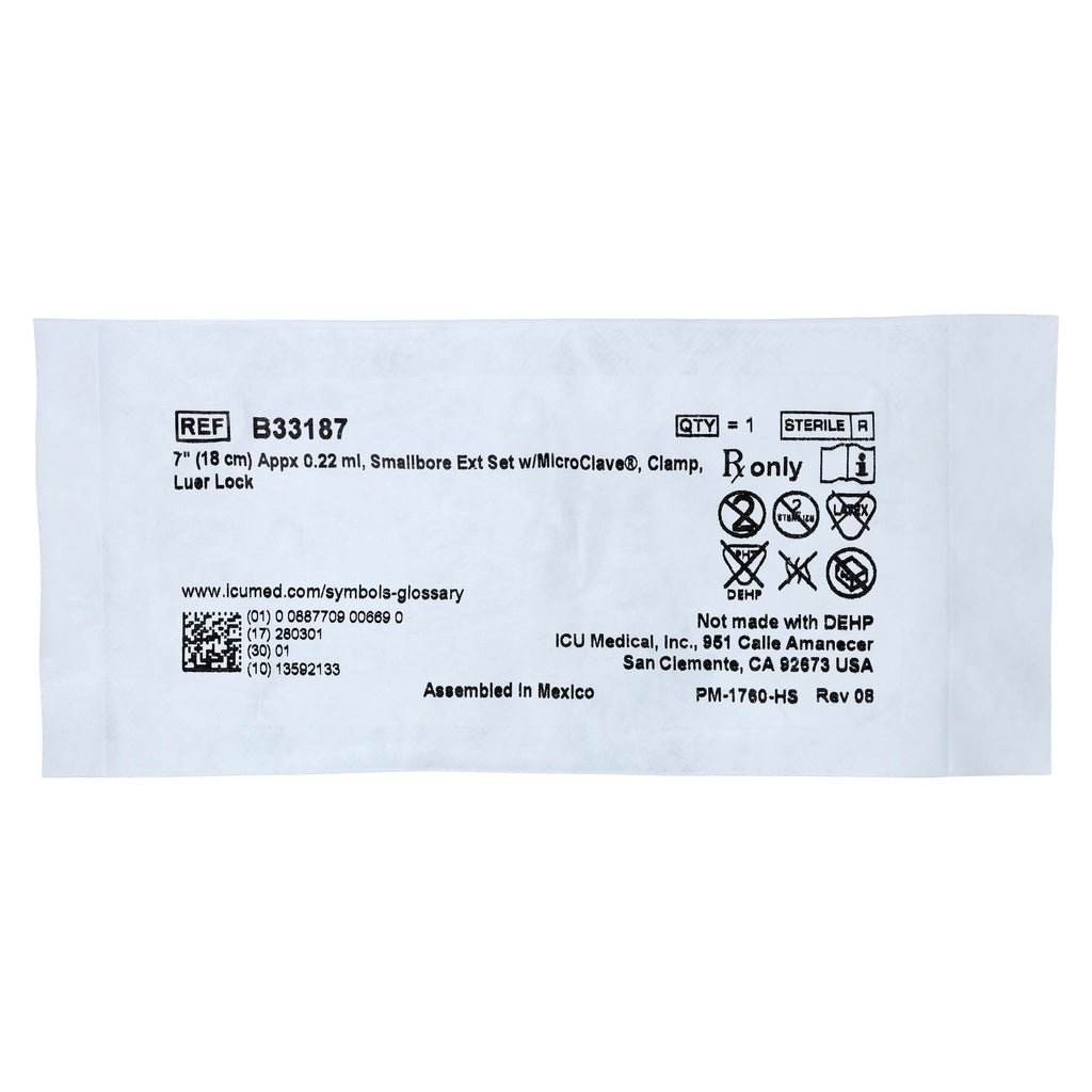 IV Extension Set Priming Volume 0.22mL 7" Luer Lock Clamp MicroClave Small Bore 50/Case