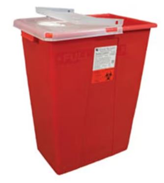 Sharps Container 8gal Red/Clear 15x10-1/2x17-2/5" Rotor/Hinged Lid Polypropylene Nestable Shatter/Puncture Resistant